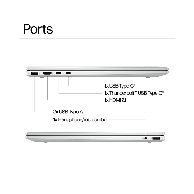 - 1 عدد پورت USB Type-C با سرعت 10 گیگابیت بر ثانیه (پشتیبانی از DisplayPort 2.1 / پشتیبانی از شارژ دهی در حالت خاموش بودن دستگاه HP Sleep and Charge / شارژ خود دستگاه)