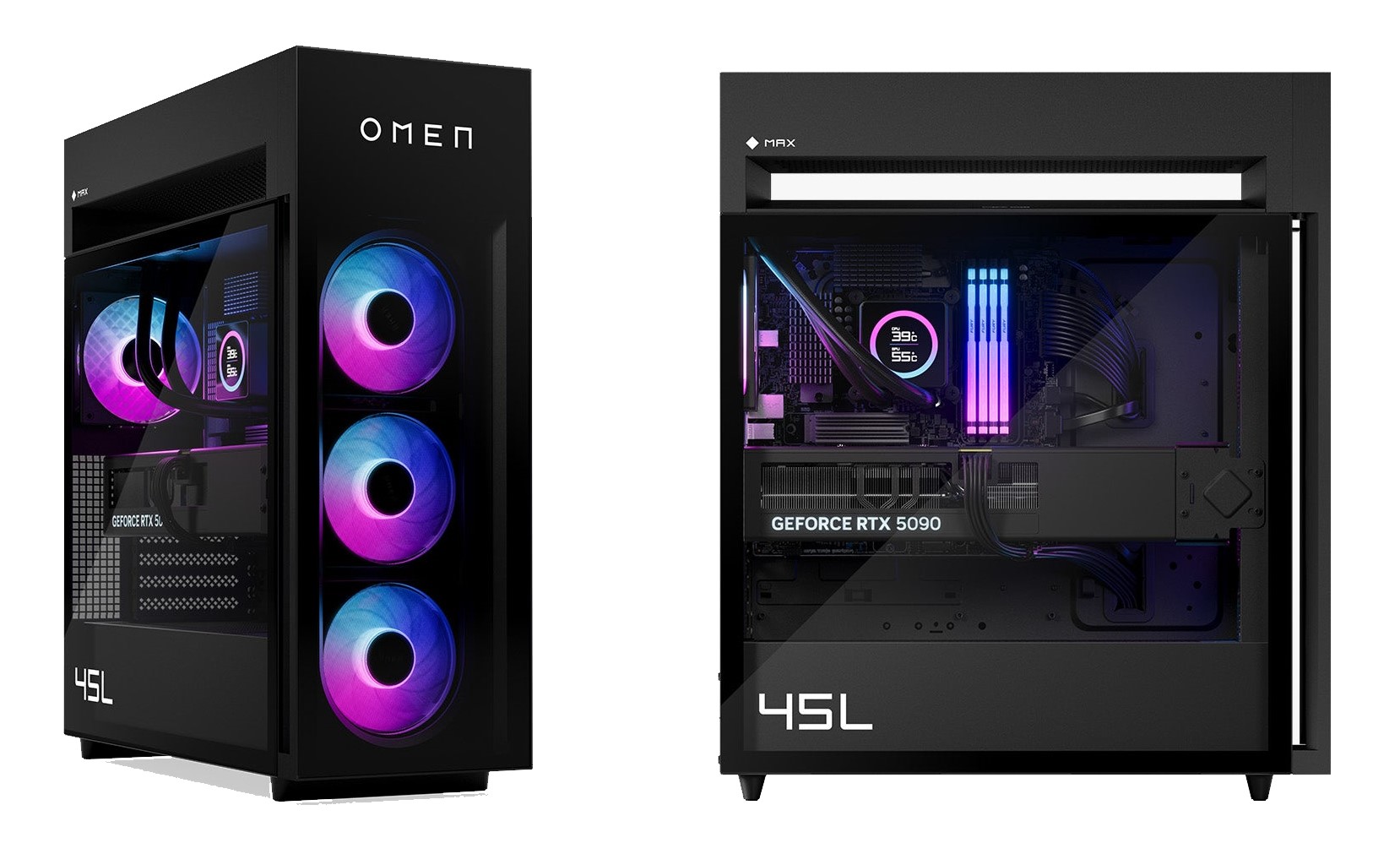 OMEN MAX 45L با پشتیبانی از قدرتمندترین کارتهای گرافیک روز دنیا طراحی شده است. بسته به کانفیگ انتخابی، میتوانید انتظار اجرای بازیهای AAA با بالاترین تنظیمات گرافیکی، رزولوشن بالا و نرخ فریم بسیار روان را داشته باشید. این سیستم بهطور ویژه برای دریافت حداکثر FPS در بازیها بهینهسازی شده است.