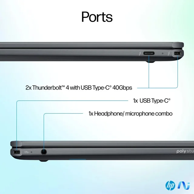 OmniBook Ultra Flip از نظر درگاههای ارتباطی نیز عملکرد چشمگیری دارد و شامل موارد زیر میشود: