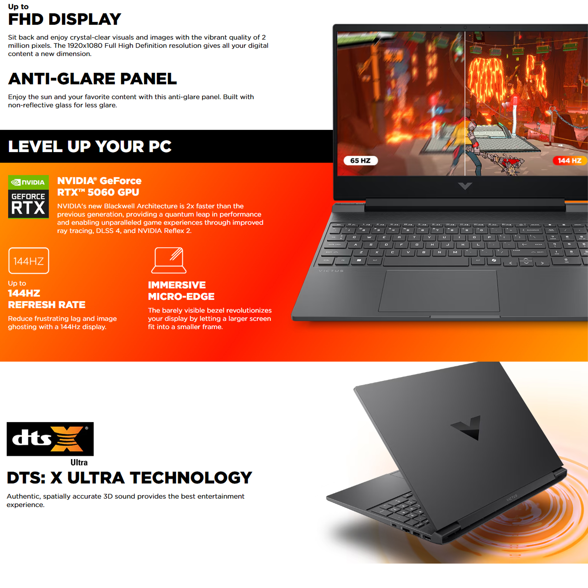 اسپیکر استریو دو کاناله DTS:X Ultra برای صدای سهبعدی و فراگیر و تکنولوژی HP Audio Boost جهت افزایش وضوح و قدرت صدا
