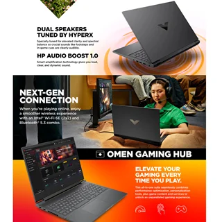 - دارای برنامه و کلید OMEN HUB بر روی کیبورد جهت ایجاد تنظیمات دقیق برای پرفورمنس خروجی و سخت افزار دستگاه