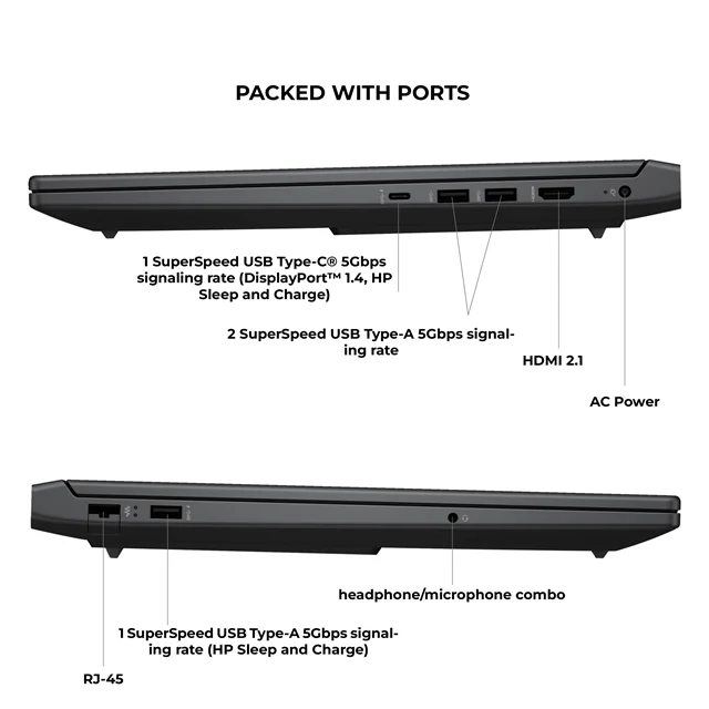 یک عدد پورت USB Type-C با سرعت 5 گیگابیت بر ثانیه با پشتیبانی از DisplayPort 1.4 و HP Sleep and Charge